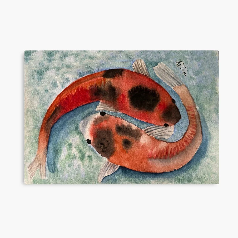 Embrace the symbolism of balance and harmony with this beautiful watercolor painting. Two koi fish, representing strength, perseverance, and good fortune, come together to form a shape similar to the yin & yang, a symbol of interconnectedness and duality. This artwork is a thoughtful gift or a meaningful addition to any art collection.